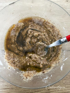 - Verser le beurre noisette refroidi et bien mélanger.