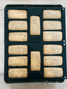 - Enfourner pour 15 à 20 minutes, cela dépendra de la taille de vos empreintes. Puis laisser tiédir dans les moules 5 minutes avant de démouler pour finir le refroidissement sur une grille.