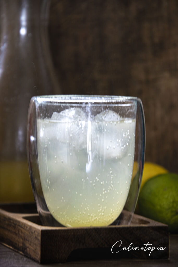 Quand vous avez le sirop de citron, le plus dur est fait. Quand vous voudrez vous régaler d’un bon mocktail lemon fizz, versez environ 50 ml de sirop de citron au fond d’un verre (adaptez la quantité à votre goût), complétez par de l’eau gazeuse bien fraîche et quelques glaçons. Voilà, c’est prêt!
