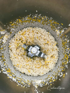 - Bien laver les citrons. Les zester grossièrement. Dans le bol d'un blender, les déposer ainsi que le sucre et le sel et pulser jusqu'à obtenir un mélange brillant, les zestes de citron ayant exprimé un peu de leur huile.