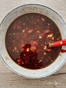 - Dans un bol, mélanger tous les autres ingrédients pour faire dissoudre la vergeoise.