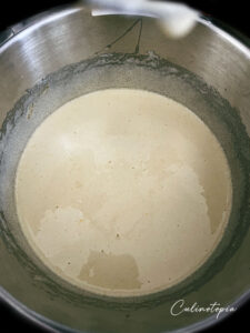 - Dans le bol du robot, battre les œufs et le sucre pendant environ 5 minutes, jusqu'à ce que le mélange soit mousseux.