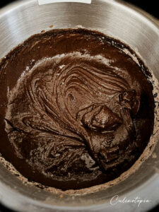 - Préchauffer le four à 180°C. Si nécessaire, beurrer et fariner vos moules à muffins. Mélanger la farine, le sel et le cacao. Réserver.