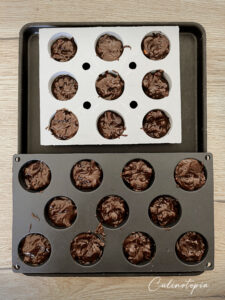 - Remplir les moules à muffins au 4/5 de leur hauteur.