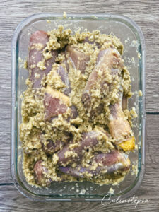 - Couper les blancs de poulet en 2 ou 3 dans le sens de la longer. Ôter la peau des cuisses de poulet le couper également en deux au niveau de l'articulation. Bien enrober le poulet de marinade puis réserver au frais pendant toute une nuit.