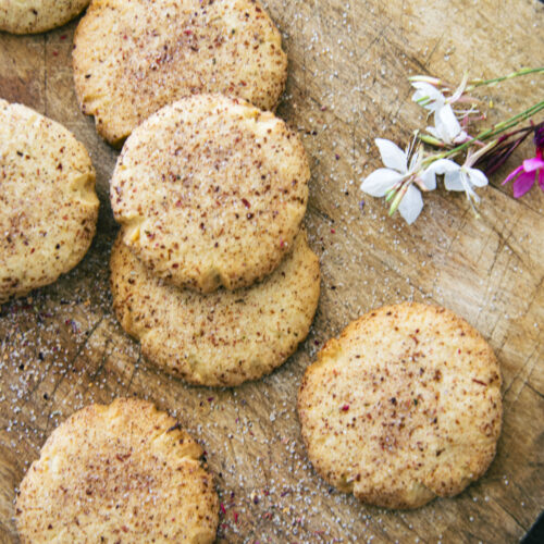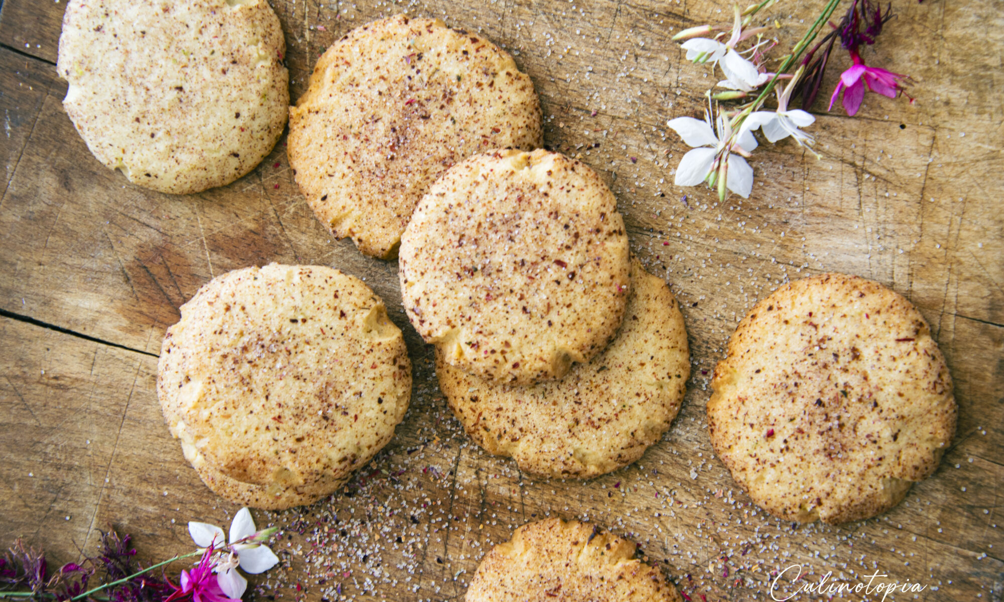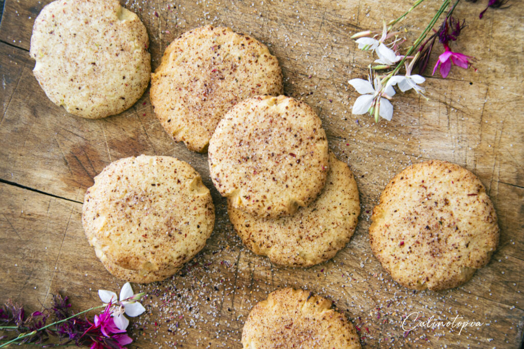 Pour le mettre en valeur, j’ai décidé de faire des cookies au sucre tradition. Une base de biscuits beurrés, recouverts de sucre semoule normalement, ici remplacé par le sucre floral.