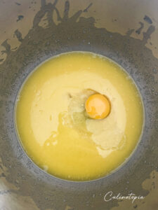 - Faire fondre le beurre. Ajouter le sucre glace et le sucre et mélanger le tout.Laisser refroidir un peu, puis incorporer l'oeuf.