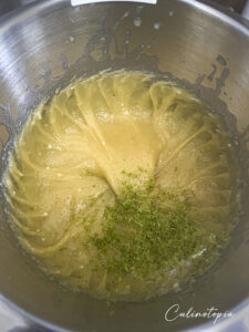 - Ajouter la vanille, le zeste de citron, le bicarbonate de soude et la crème de tartre et le sel.