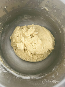 - Mélanger le tout, puis incorporer la farine petit à petit. Quand la pâte est homogène, filmer au contact et laisser reposer une nuit au frais.