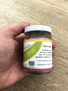 Je ne me serai pas arrêtée devant ce produit dans un magasin, et cela aurait été du gâchis. En fait, le sucre floral, c’est super bon! Cela a un petit goût … de fleurs, oui, mais pas que. Un petit goût d’été, de prairie fleurie, de soleil.